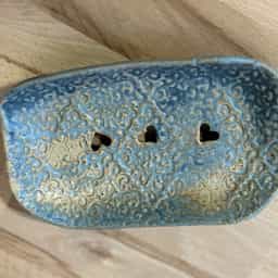 Keramická mýdlenka v jemné modré barvě s elegantním květinovým vzorem přinese do vaší koupelny nádech přírody. Vysoce dekorativní a praktická pro každodenní použití.